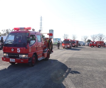 令和5年1月8日(日曜日)、3年ぶりに市役所西側催事広場にて消防出初式を開催することができました。